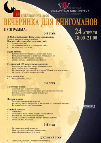 «Библионочь-2026» в Брестской областной библиотеке 24 апреля: что в программе