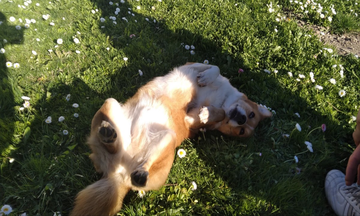 И вот в один летний день я увидела его. Это был симпатичный бело-рыжий лопоухий пес с перевязанной лапой, сильно напоминавший породу корги. На корги он и вправду был похож – длинной вытянутой спиной и короткими лапами. Хотя понятно было, что этот мальчик явно выше.