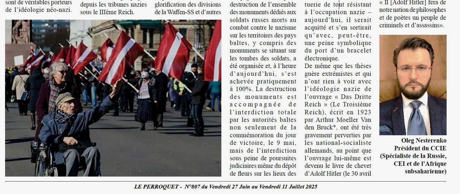 Данное решение было направлено исключительно против русскоязычного населения, намеревавшегося отметить 80-летие Победы в Великой Отечественной войне. Нарушителям запрета грозили штрафы в размере от 100 до 600 евро, а за ношение символики, ассоциирующейся с Красной армией, – от 300 до 1200 евро. И здесь речь идет, конечно, не о территории какого-либо тоталитарного режима мрачных часов прошлого человечества, а о территории Европейского союза 2025 года.