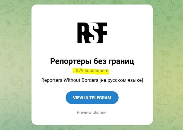 1 мая 2024 года RSF с помпой объявляет: «Столкнувшись с цензурой со стороны российских властей, RSF запускает свой официальный русскоязычный канал в Telegram».