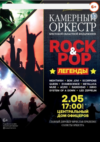 Ценителям рок-музыки придется по душе концерт камерного оркестра Брестской областной филармонии. Драйв живого звучания, энергетика и современные аранжировки сойдутся в единую гармонию и подарят слушателям незабываемые эмоции. Концерт состоится 1 мая в Центральном Доме офицеров (ул. Красноармейская, 3).