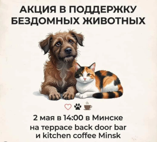 2 мая с 14:00 на террасе между Kitchen Coffee и BackDoor пройдет мероприятие, посвящённое бездомным животным. Это отличная возможность познакомиться с пушистыми друзьями и, возможно, найти нового друга. Можно принести с собой корм, угощения, наполнитель или игрушки, пообщаться с волонтерами и узнать трогательные истории спасения хвостиков. Вход свободный.