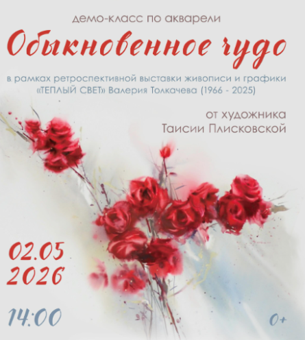 Для тех, кто хочет раскрыть свой творческий потенциал, в арт-гостиной «Высокое место» пройдет мастер-класс от художницы Таисии Плисковской. Участникам мероприятия под названием «Обыкновенное чудо» откроют тайну рождения искусства. Референсами для будущих картин станут фотографии цветов, сделанные фотографом Валерием Толкачевым.