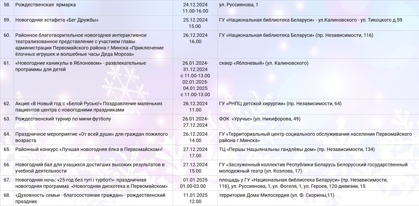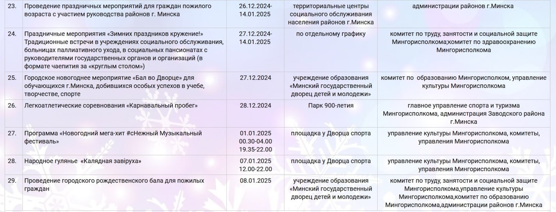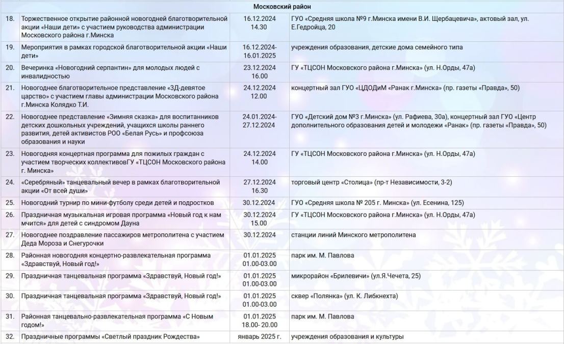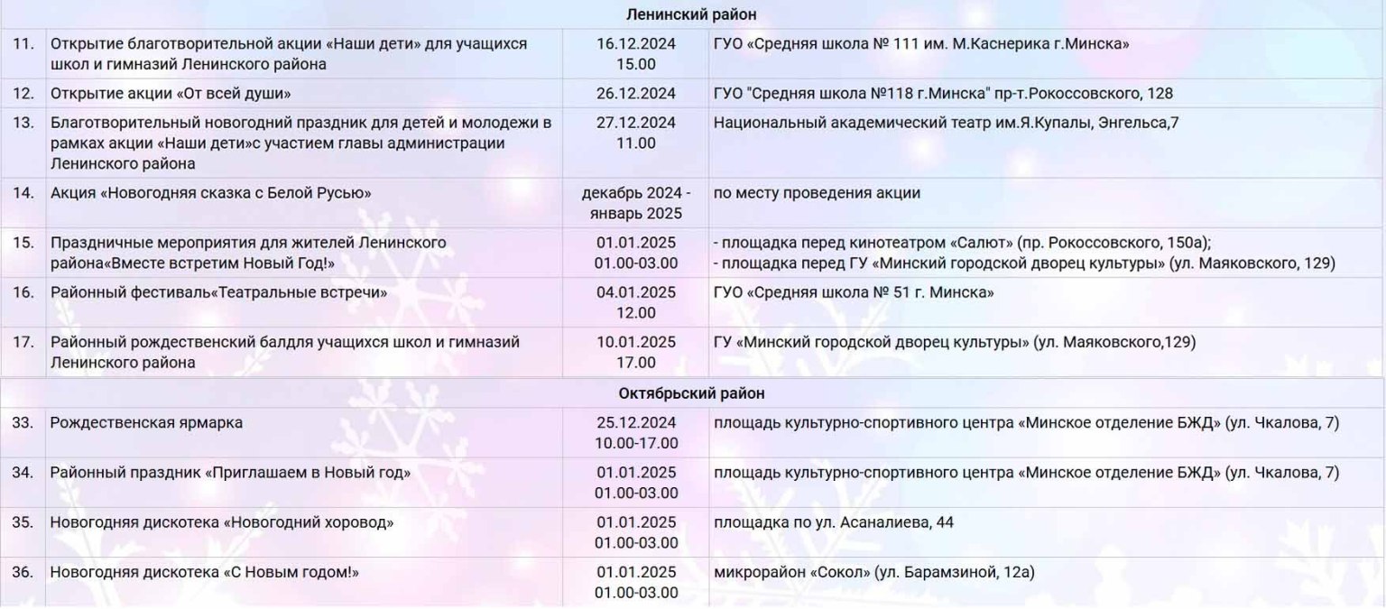 Полная программа праздничных мероприятий «Новый год 2025» в Минске