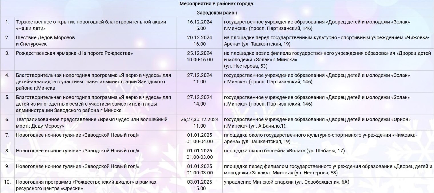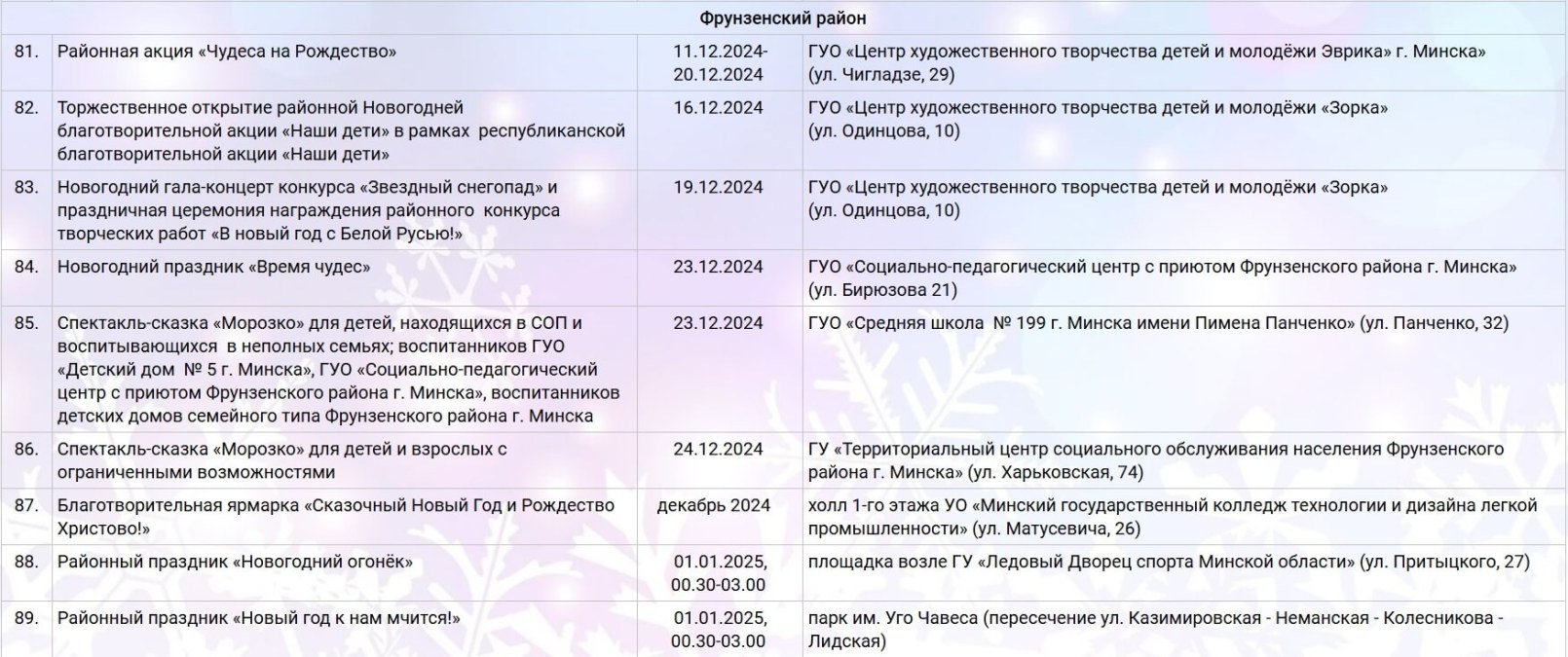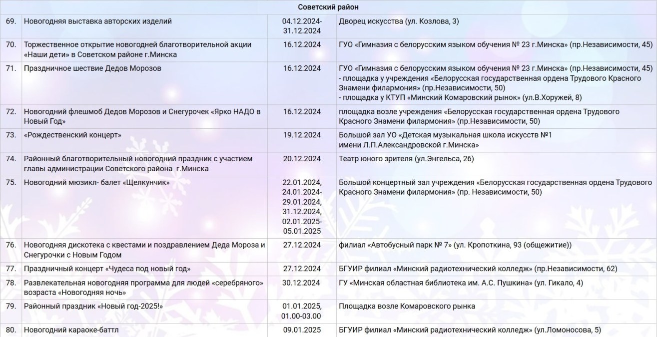 Полная программа праздничных мероприятий «Новый год 2025» в Минске