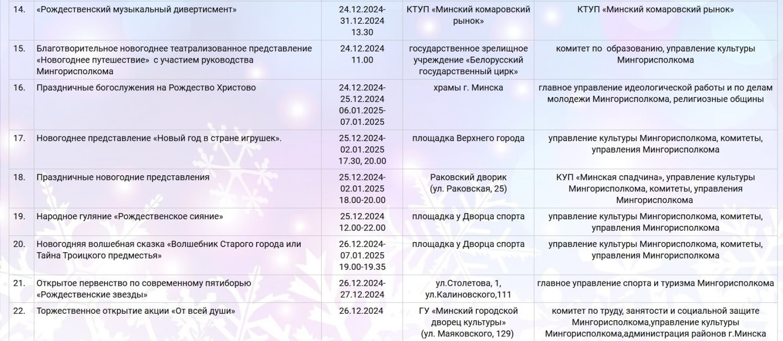Новый год в Минске 2025. Программа праздничных мероприятий