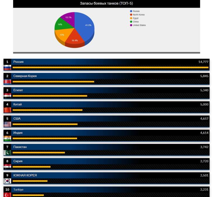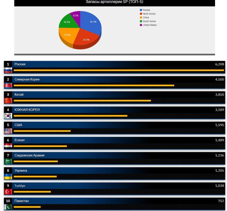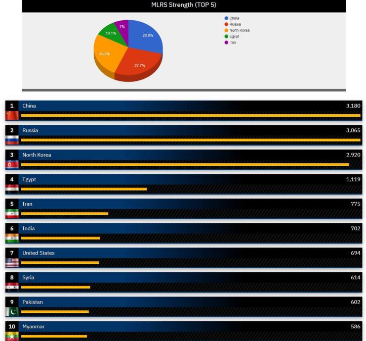 По остальным же категориям США безоговорочно отстает в первую очередь от России. При этом в ТОП 3 по таким показателям как общее число танков, артиллерии, количество РСЗО уверенно входит Северная Корея, опережая даже Китай.