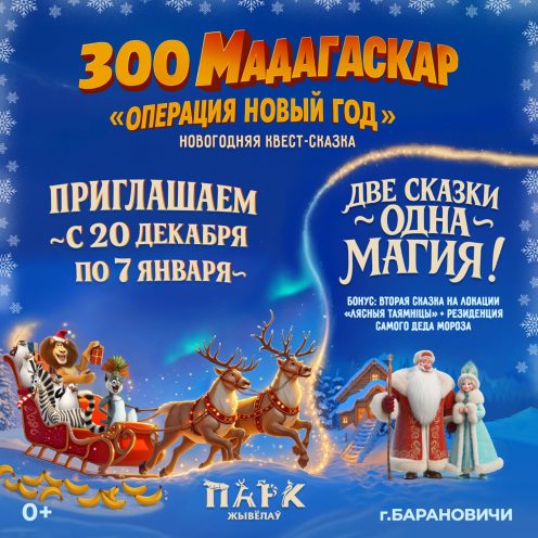 Отличный подарок к новогодним праздникам — квест-сказку «ZOO-МАДАГАСКАР: Операция Новый год» — подготовил Парк Животных (д. Глинище, Барановичский р-н) для маленьких и взрослых посетителей.